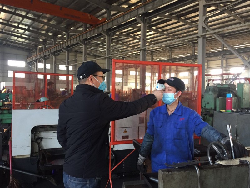 为最大限度地避免员工群聚,体温测控组每日下班前,前往各部门工作岗位实施体温测量。