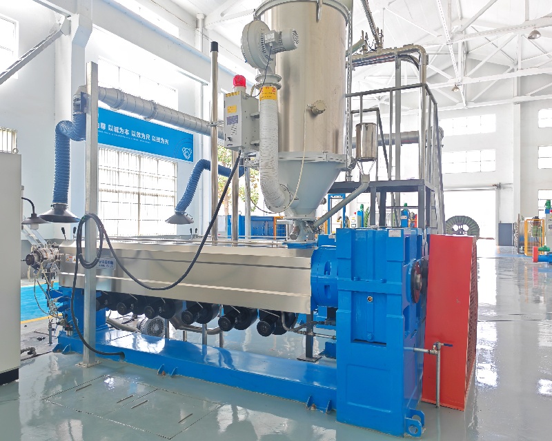 冷却系统: 水喷水 +空气冷却 站,可调节水流(5-20 L/min)和气压(0.2-0.5 MPa),将鞘温度从挤出温度降低至≤50°C,以确保尺寸稳定性。