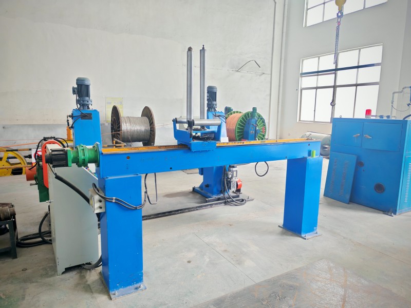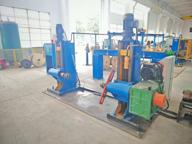 双立柱式结构,线盘的升降(铜螺母)及顶针的分合,由交流电机驱动(电动升降,电动开合);线盘采用端轴式安装。